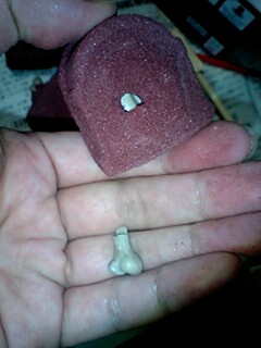 かれこれ10分ほどゴリゴリやっていると、ヘラに硬いものが当る感触が。